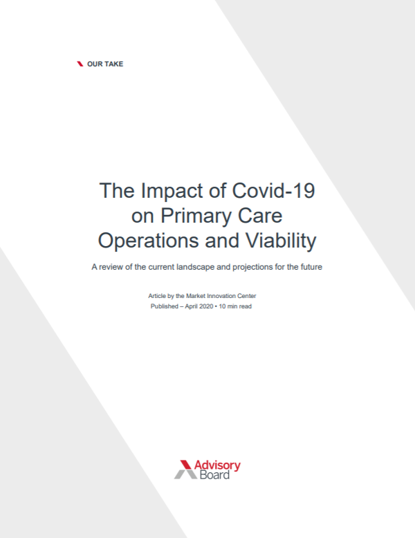 Upstream sites like primary care are feeling the effects of the country's Covid-19 epidemic, with practices reporting low reimbursable volumes, challenges with telehealth adoption, and increasingly dire financial constraints.