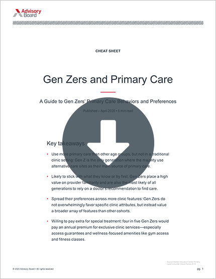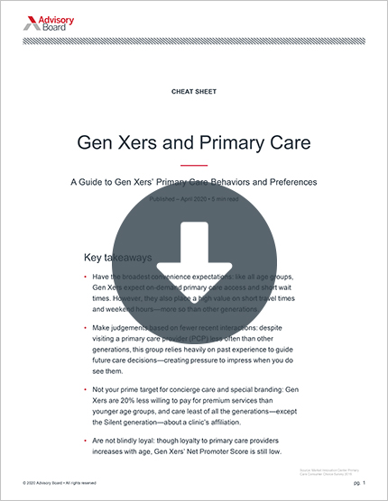 Each generation consumes health care differently and prefers different features and services when shopping for care. What changes or investments can you make to meet these age-segmented preferences?
