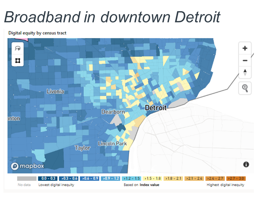 We can use access to broadband in Detroit, Michigan as an example. Almost 40% of the 1.75 million people living in Wayne County, the county that includes Detroit, don’t use internet at broadband speeds. That’s over 670,000 people.