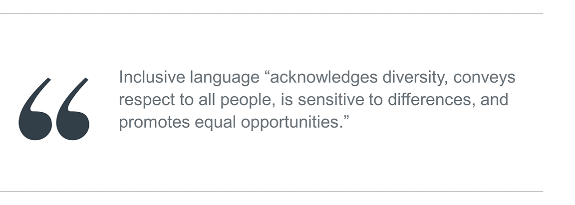 Below are a few examples that illustrate what inclusive language looks like in practice.