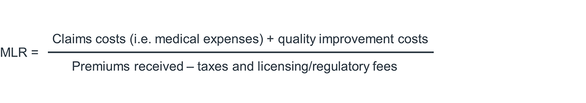Medical loss ratio (MLR) is the portion of premium dollars spent on medical claims and quality improvements versus the cost of administrative expenditures.