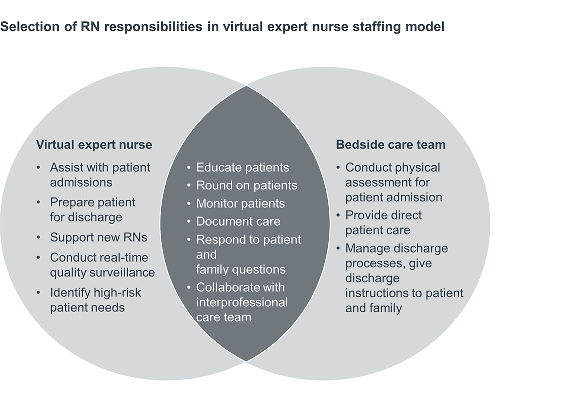 The virtual team-based staffing model helps organizations adjust their skill mix, reducing labor costs. This model also helps improve care coordination and new nurse retention.