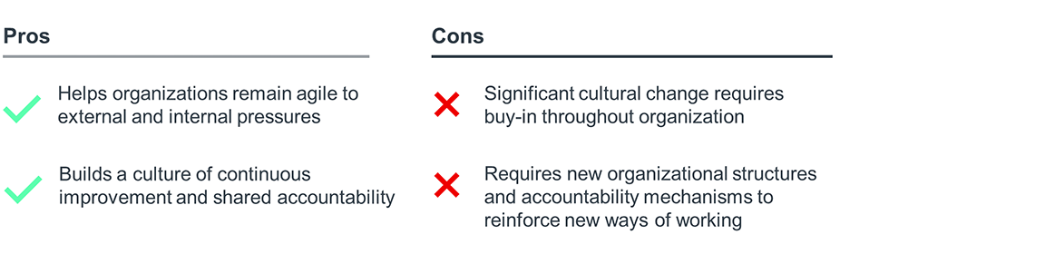 There are two key benefits of continuous strategic planning. First, it enables organizations to be more flexible by pushing them to constantly recalibrate against emerging constraints and opportunities. Second, it instills a culture of continuous improvement and shared accountability by regularly bringing leaders together to collectively find solutions to these new constraints or opportunities.