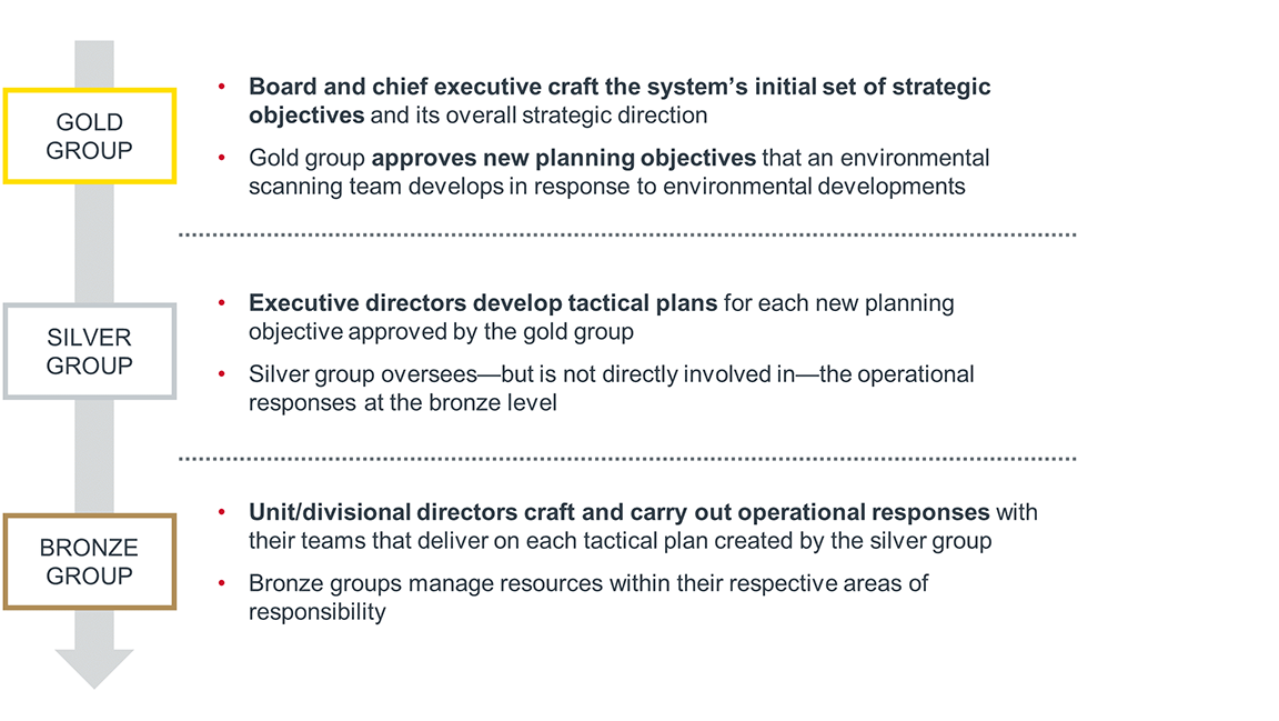 Senior leaders audited these priorities to create a clearer strategic framework. The resulting framework centered on “strategic objectives” that define the system’s long-term ambitions. One level down, it housed 65 “planning objectives” meant to incrementally move the organization closer to its six strategic aims.