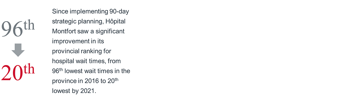 To alleviate these problems, Hôpital Montfort introduced 90-day strategic plans for managers. This approach has improved the organization’s level of flexibility, fostered a culture of shared accountability, and made staff more open to change.