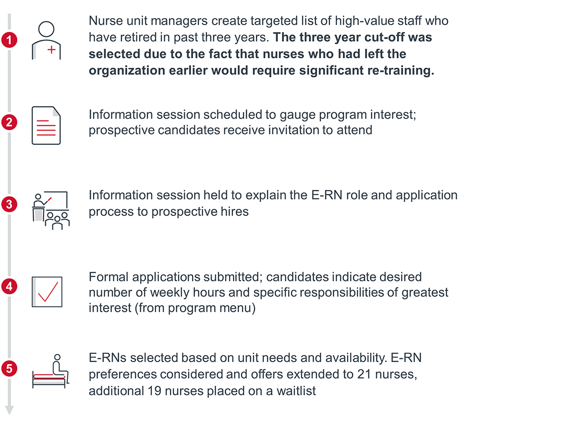 After scoping the E-RN role, Parkview’s nursing leadership next focused on recruiting high-value staff to fill the position. Their process is detailed below: