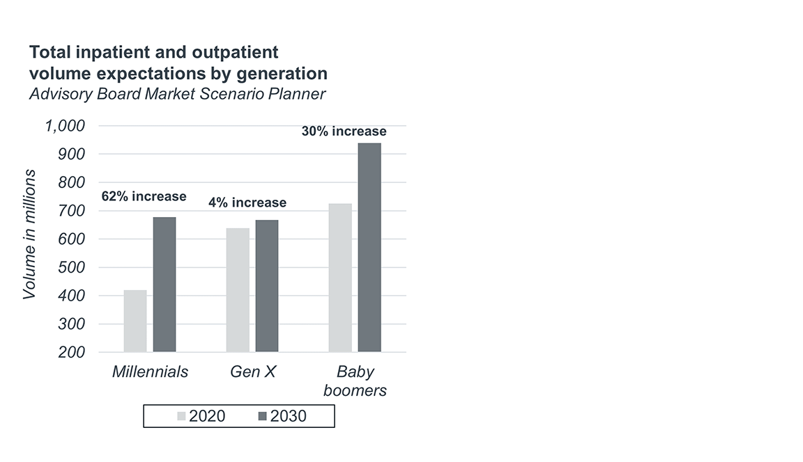 Differences in the size and preferences of each generation have implications for long-term utilization projections, clinical services planning, and consumer strategy. Providers should plan for these shifts and understand their implications to make better informed long-term strategic planning decisions.