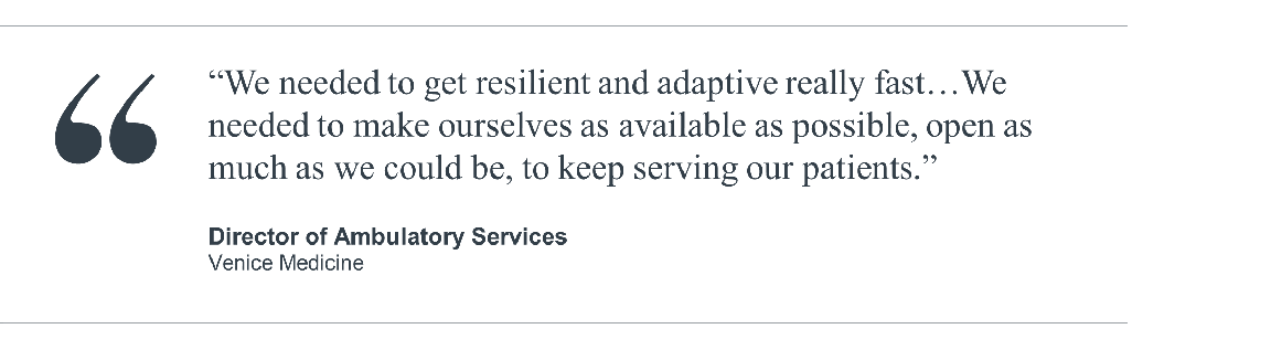 As a result of the pandemic, and the quick responses it required, Venice has learned that the best thing you can do to succeed in the outpatient space is giving yourself the gift of flexibility.