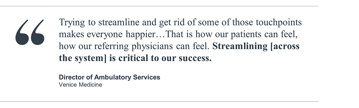 Venice’s response has streamlined patient care, cutting out unnecessary touchpoints and referral queues. Patient and physician satisfaction has led Venice to plan for additional technology use and alignment of their service line across care sites.