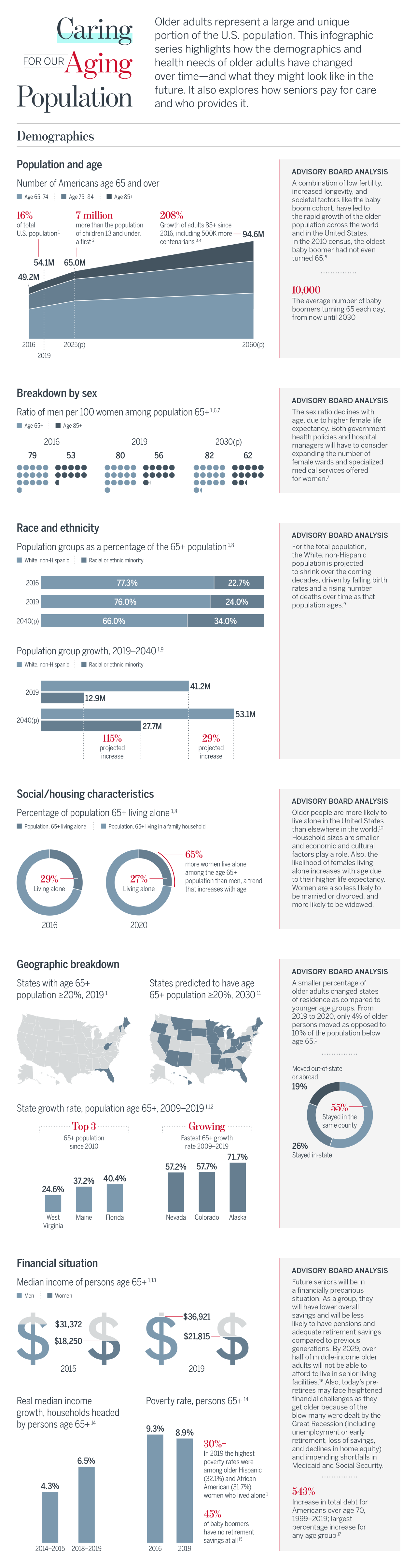 Continue LogoutOlder adults, defined as people aged 65 and older, make up a larger part of the health care system than ever before. This growing segment of the population has very different demographics and health needs. To create a sustainable model and provide the best level of care, we have to understand who makes up the older adult population, how their financial and health status has changed over time, and what labor force supports them.